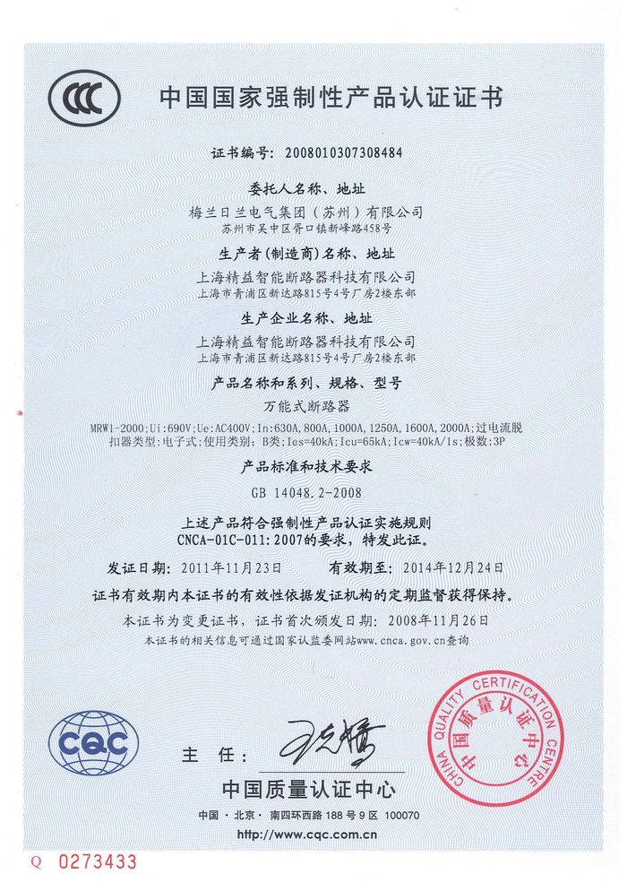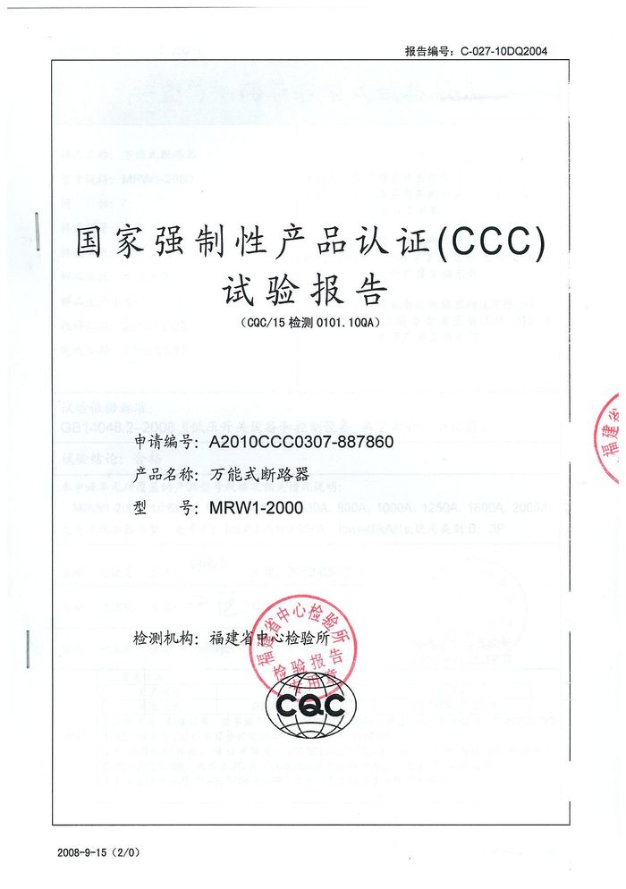 MRW1-2000萬(wàn)能斷路器資質(zhì)證書(shū)