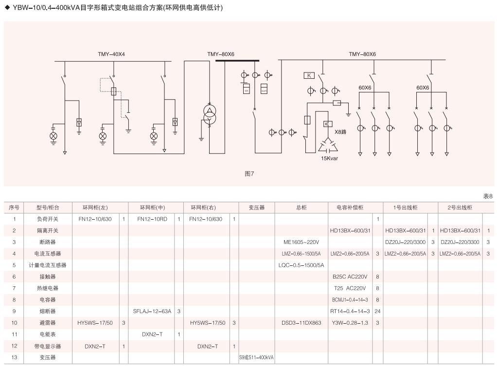 表6~列舉了一些典型組合接線方案,供用戶和設(shè)計單位參考。(以配裝壓氣式負(fù)荷開關(guān)為例)