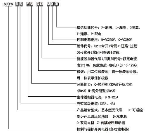 用戶(hù)在訂貨時(shí)應(yīng)寫(xiě)明SLCPS控制與保護(hù)開(kāi)關(guān)電器的產(chǎn)品型號(hào)、規(guī)格、短路脫扣器額定電流、智能控制器額定工作電流、負(fù)載性質(zhì)、線圈控制電壓、接線方式等內(nèi)容。