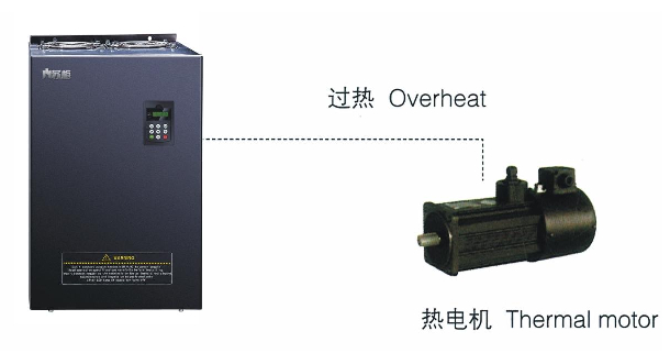 選用輸入輸出擴(kuò)展卡,模擬量輸入A13可接受電機(jī)溫度傳感器輸入(PTlOO,PTlOOO)。當(dāng)電機(jī)溫度越過預(yù)警值時(shí),變頻器輸出脈沖信號提示過熱,當(dāng)電機(jī)溫度超過過熱保護(hù)值時(shí),變頻器故障輸出給電機(jī)妥善的保護(hù)。