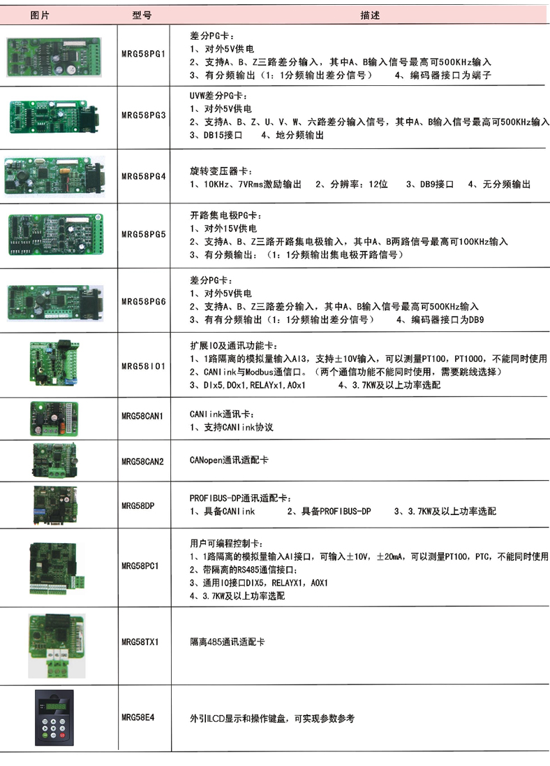 | 選配件 | 多功能輸入輸出擴(kuò)展卡、制動(dòng)組件、通訊卡、PG卡、用戶可編程卡等 | |